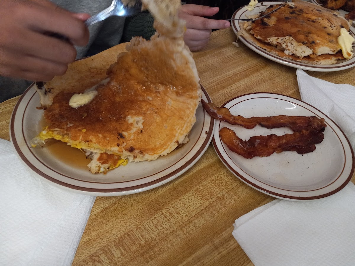 Best bacon grilled cheese I've ever had! Pancakes and home fries were delicious too. Owner was very friendly and nice to our rambunctious children. We came here instead of eating at the Great Wolf Lodge. Good decision!
